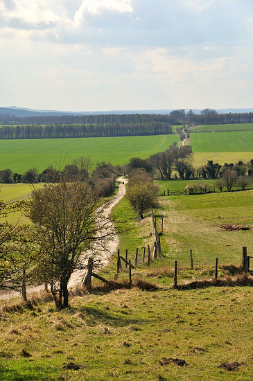 A view of the Ridgeway towards Wayland's Smithy from the top of Uffington Castle.